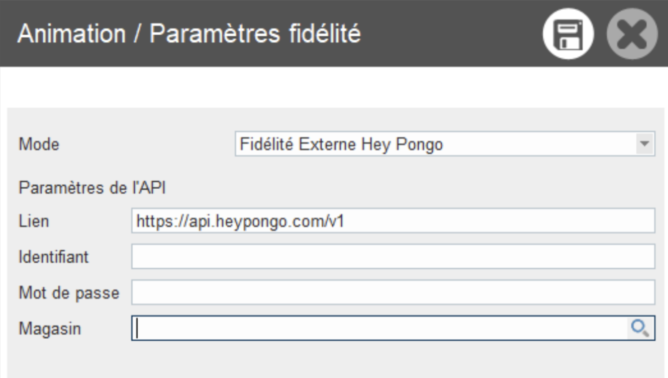 - Sélectionnez le Mode Fidélité Externe Hey Pongo