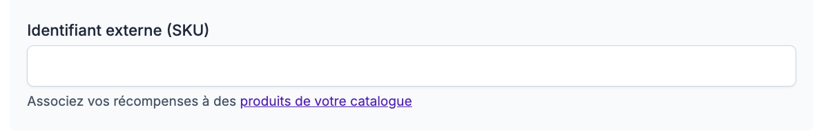 - Renseignez la Référence code-barre (SKU) du produit dans le champ Identifiant externe (SKU) de la récompense👇